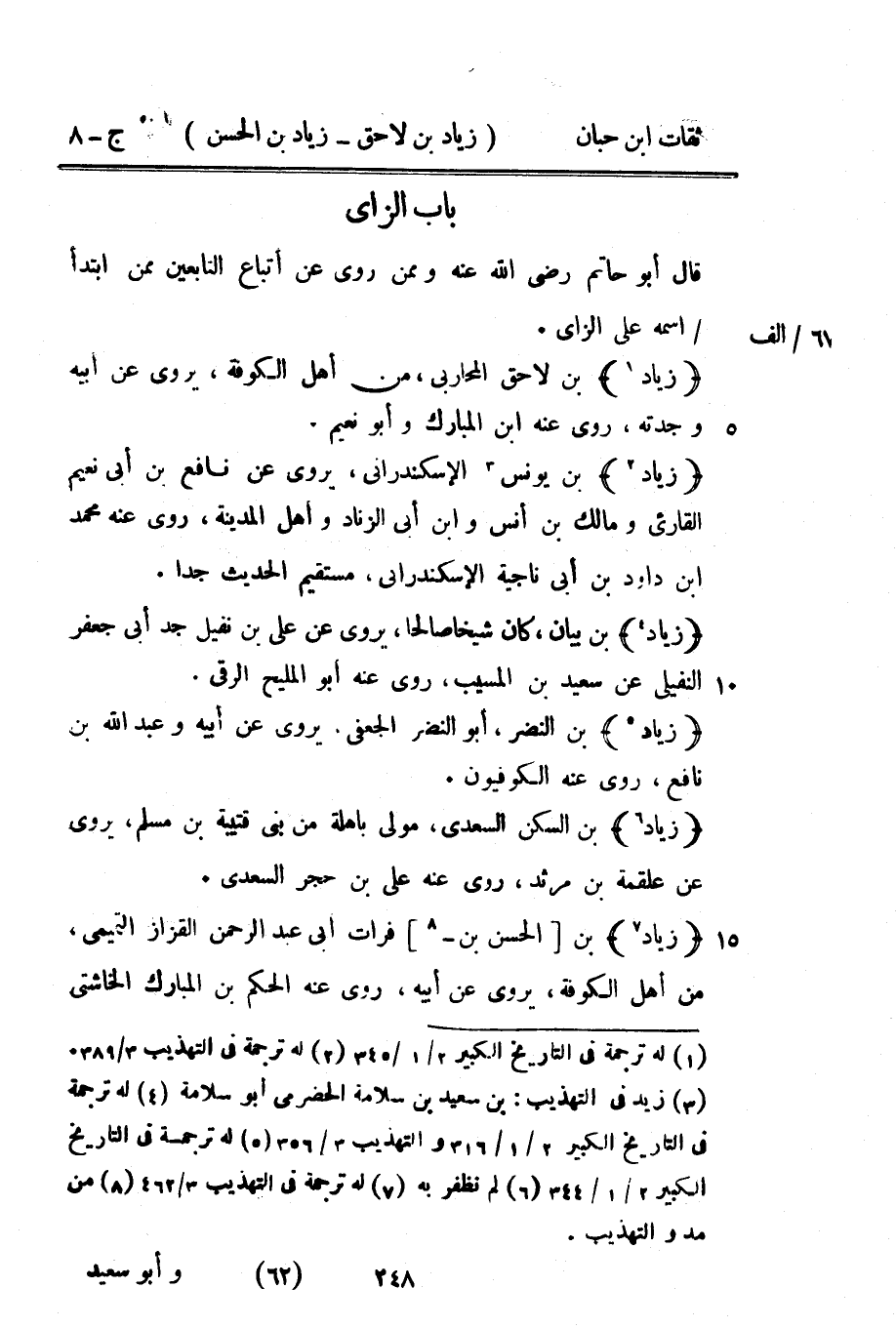 قَالَ أَبُو حَاتِم رَضِي الله عَنهُ وَمِمَّنْ روى عَن أَتبَاع التَّابِعين مِمَّن ابْتَدَأَ اسْمه على الزَّاي