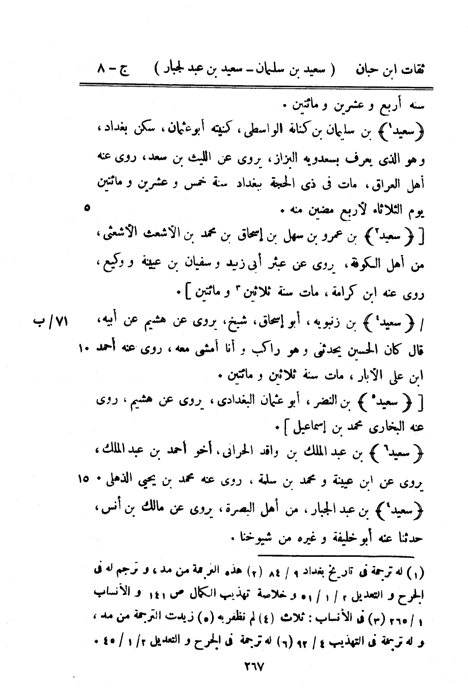 13371 - سعيد بن زنبويه أَبُو إِسْحَاق شيخ يروي عَن هشيم عَن أَبِيه قَالَ كَانَ الْحُسَيْن يحدثني وَهُوَ رَاكب وَأَنا أَمْشِي مَعَه روى عَنهُ أَحْمد بن عَليّ الْأَبَّار مَاتَ سنة ثَلَاثِينَ وَمِائَتَيْنِ