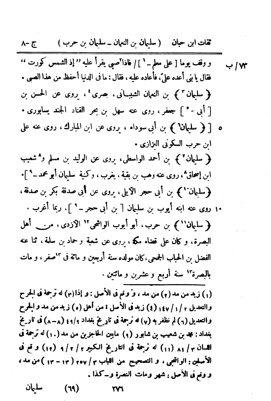 13428 - سُلَيْمَان بن حَرْب أَبُو أَيُّوب الواشحي الْأَزْدِيّ من أهل الْبَصْرَة وَكَانَ على قَضَاء مَكَّة يروي عَن شُعْبَة وَحَمَّاد بن سَلمَة ثَنَا عَنهُ الْفضل بن الْحباب الجُمَحِي كَانَ مولده سنة أَرْبَعِينَ وَمِائَة فِي صفر وَمَات بِالْبَصْرَةِ سنة أَربع وَعشْرين وَمِائَتَيْنِ
