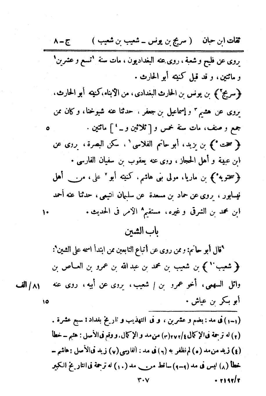 قَالَ أَبُو حَاتِم وَمِمَّنْ روى عَن أَتبَاع التَّابِعين مِمَّن ابْتَدَأَ اسْمه على الشين