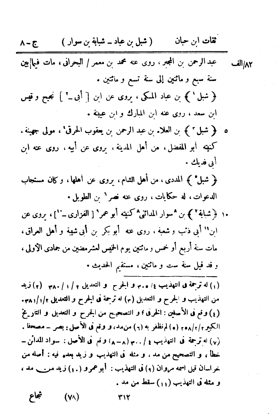 13625 - شَبابَة بن سوار الْمَدَائِنِي كنيته أَبُو عمر الْفَزارِيّ يروي عَن بن أبي ذِئْب وَشعْبَة روى عَنهُ أَبُو بَكْرِ بْنُ أَبِي شَيْبَةَ وَأهل الْعرَاق مَاتَ سنة أَربع أَو خمس وَمِائَتَيْنِ يَوْم الْخَمِيس لعشر مضين من جُمَادَى الأولى وَقد قيل سنة سِتّ وَمِائَتَيْنِ مُسْتَقِيم الحَدِيث