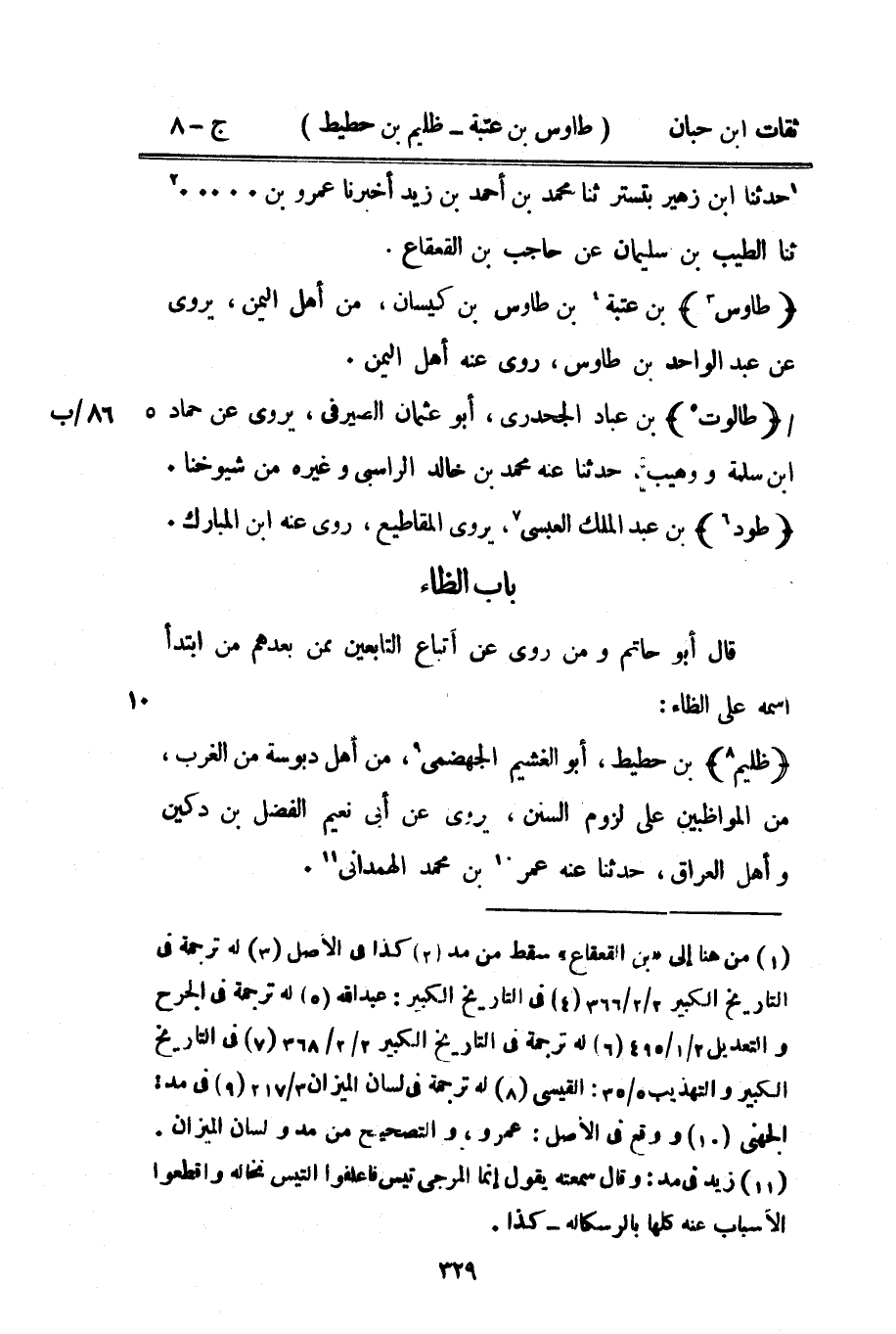 قَالَ أَبُو حَاتِم وَمن روى عَن أَتبَاع التَّابِعين مِمَّن بعدهمْ من ابْتَدَأَ اسْمه على الظَّاء