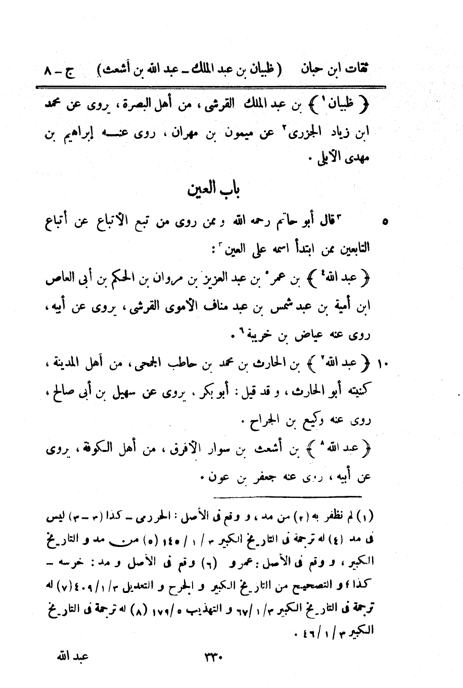 قَالَ أَبُو حَاتِم رَحمَه الله وَمِمَّنْ روى من تبع الأتباع عَن أَتبَاع التَّابِعين مِمَّن بعدهمْ مِمَّن ابْتَدَأَ اسْمه على الْعين