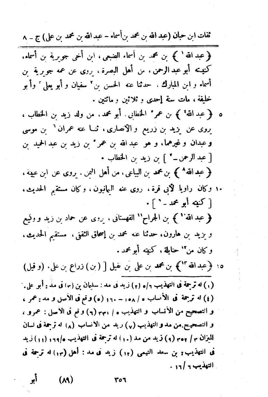 13848 - عَبْدُ اللَّهِ بْنُ مُحَمَّدِ بْنِ أَسمَاء الضبعِي بن أخي جوَيْرِية بن أَسمَاء كنيته أَبُو عبد الرَّحْمَن من أهل الْبَصْرَة يروي عَن عمَّة جوَيْرِية بن أَسمَاء وَابْن الْمُبَارك حَدَّثنا عَنهُ الْحسن بن سُفْيَان وَأَبُو يعلى وَأَبُو خَليفَة مَاتَ سنة إِحْدَى وَثَلَاثِينَ وَمِائَتَيْنِ