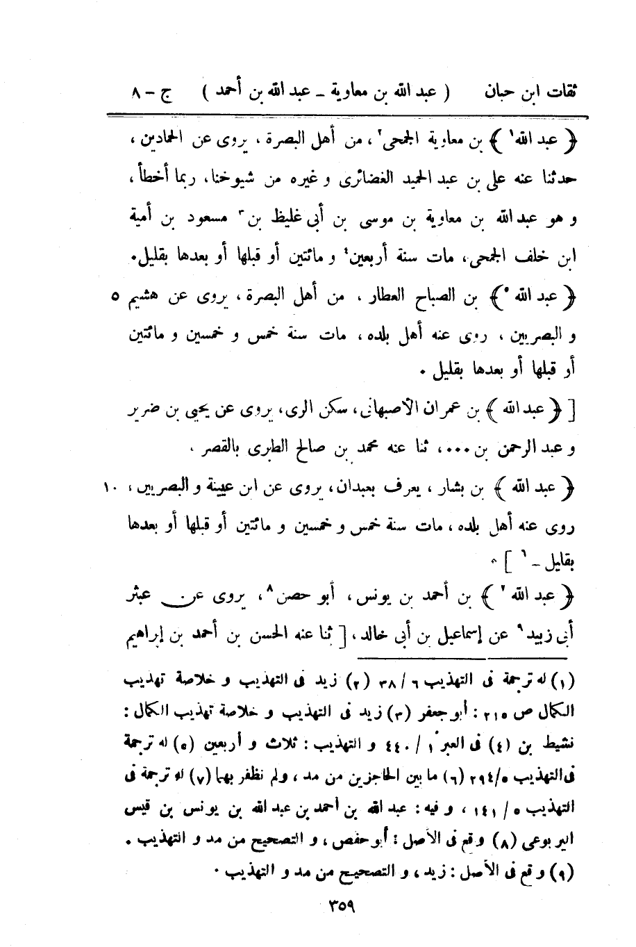 13862 - عبد الله بن مُعَاوِيَة الجُمَحِي من أهل الْبَصْرَة يروي عَن الحمادين حَدَّثنا عَنهُ عَليّ بن عبد الحميد الغضائري وَغَيره من شُيُوخنَا رُبمَا أَخطَأ وَهُوَ عبد الله بن مُعَاوِيَة بن مُوسَى بن أَبى غليظ بن مَسْعُود بن أُميَّة بن خلف الجُمَحِي مَاتَ سنة أَرْبَعِينَ وَمِائَتَيْنِ أَو قبلهَا أَو بعْدهَا بِقَلِيل