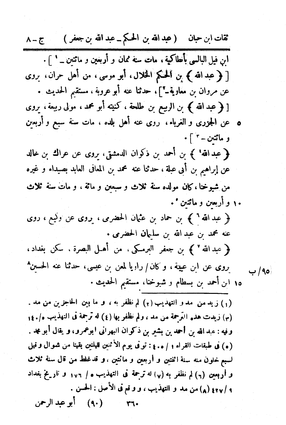 13871 - عبد الله بن جَعْفَر الْبَرْمَكِي من أهل الْبَصْرَة سكن بَغْدَاد يرْوى عَن بن عُيَيْنَة وَكَانَ رَاوِيا لِمَعْنٍ بن عِيسَى حَدَّثنا عَنهُ الْحُسَيْن بن أَحْمد بن بسطَام وشيوخنا مُسْتَقِيم الحَدِيث