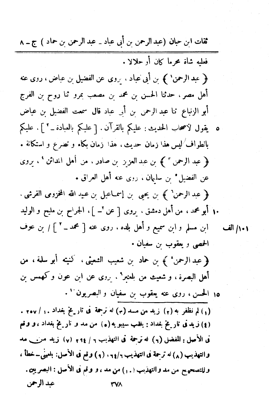 13967 - عبد الرَّحْمَن بن أبي عباد يروي عَن الفضيل بن عِيَاض روى عَنهُ أهل مصر حَدَّثنا الْحسن بن مُحَمَّد بن مُصعب بمرو ثَنَا روح بن الْفرج أَبُو الزِّنْبَاع ثَنَا عبد الرَّحْمَن بن أبي عباد قَالَ سَمِعت الفضيل بن عِيَاض يَقُول لأَصْحَاب الحَدِيث عَلَيْكُم بِالْقُرْآنِ عَلَيْكُم بِالْعبَادَة عَلَيْكُم بِالطّوافِ لَيْسَ هَذَا زمَان حَدِيث هَذَا زمَان بكاء وتضرع واستكانة