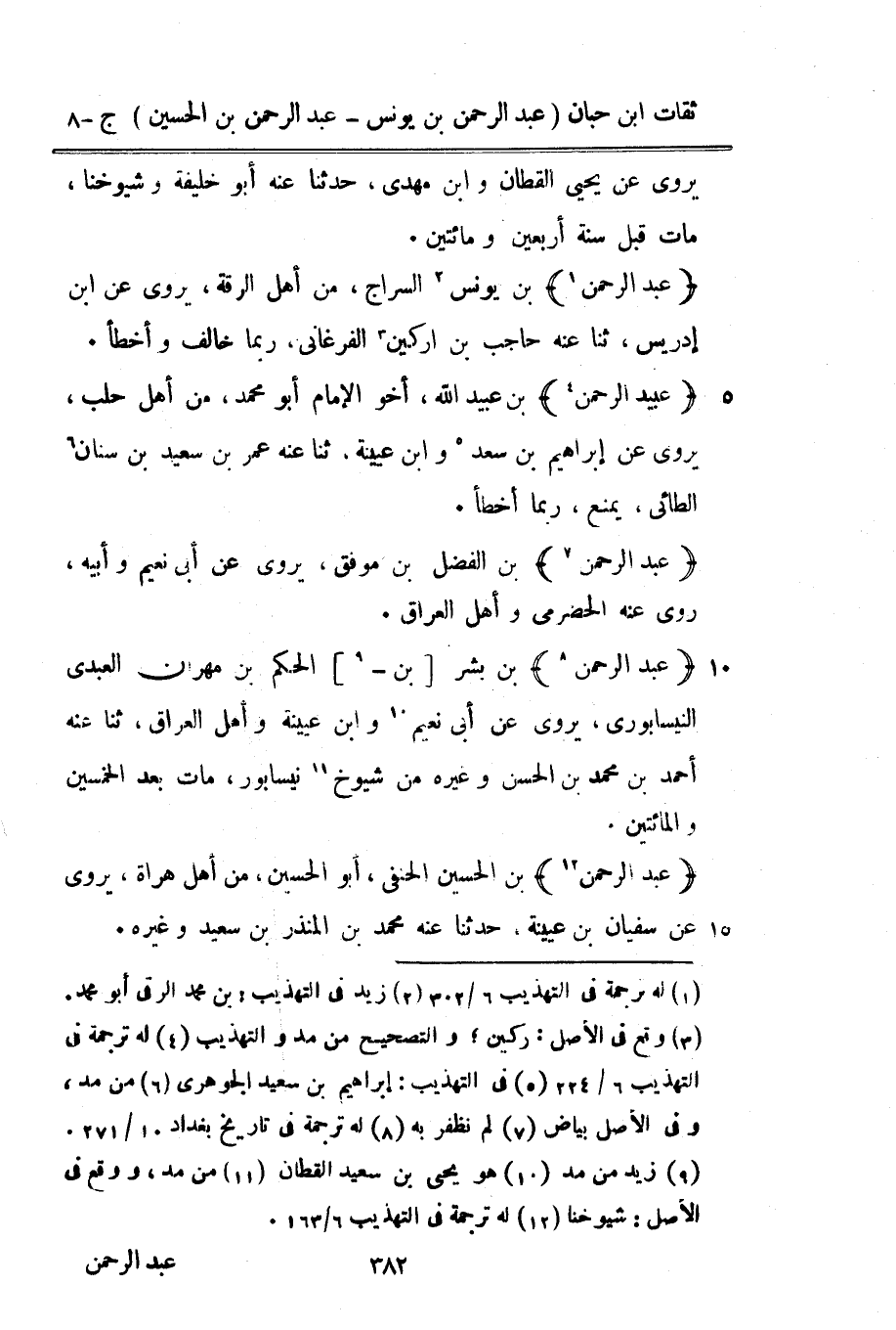 13990 - عبد الرَّحْمَن بن بشر بن الحكم بن مهْرَان الْعَبْدي النَّيْسَابُورِي يروي عَن أبي نعيم وَابْن عُيَيْنَة وَأهل الْعرَاق ثَنَا عَنهُ أَحْمد بن مُحَمَّد بن الْحسن وَغَيره من شُيُوخ نيسابور مَاتَ بعد الْخمسين والمائتين