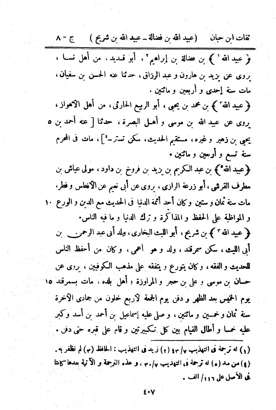14125 - عبيد الله بن شُرَيْح أَبُو اللَّيْث البُخَارِيّ ولد أبي عبد الرَّحْمَن بن أبي اللَّيْث سكن سَمَرْقَنْد ولد وَهُوَ أعمى وَكَانَ من أحفظ النَّاس للْحَدِيث وَالْفِقْه وَكَانَ يتورع ويتفقه على مَذْهَب الْكُوفِيّين يروي عَن حسان بن مُوسَى وَعلي بن حجر والمراوزة وَأهل بَلَده مَاتَ بسمرقند يَوْم الْخَمِيس بعد الظّهْر وَدفن يَوْم الْجُمُعَة لأَرْبَع خلون من جُمَادَى الْآخِرَة سنة ثَمَان وَخمسين وَمِائَتَيْنِ وَصلى عَلَيْهِ إِسْمَاعِيل بن أَحْمد بن أَسد وَكبر عَلَيْهِ خمْسا وَأطَال الْقيام بَين كل تكبيرتين وَقَامَ على قَبره حَتَّى دفن