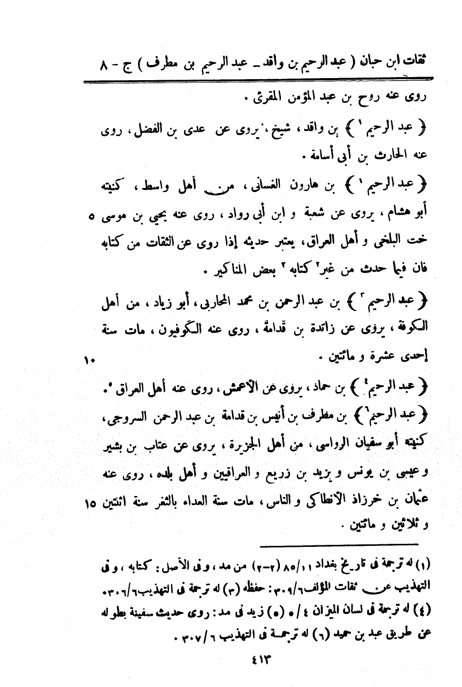 14154 - عَبْد الرَّحِيم بن مطرف بن أنيس بن قدامَة بن عبد الرَّحْمَن السرُوجِي كنيته أَبُو سُفْيَان الرواسِي من أهل الجزيرة يَرْوِي عَن عتاب بن بشير وَعِيسَى بن يُونُس وَيزِيد بن زُرَيْع والعراقيين وَأهل بَلَده روى عَنهُ عُثْمَان بن خرزاد الْأَنْطَاكِي وَالنَّاس مَاتَ سنة العداء بالثغر سنة اثْنَتَيْنِ وَثَلَاثِينَ وَمِائَتَيْنِ