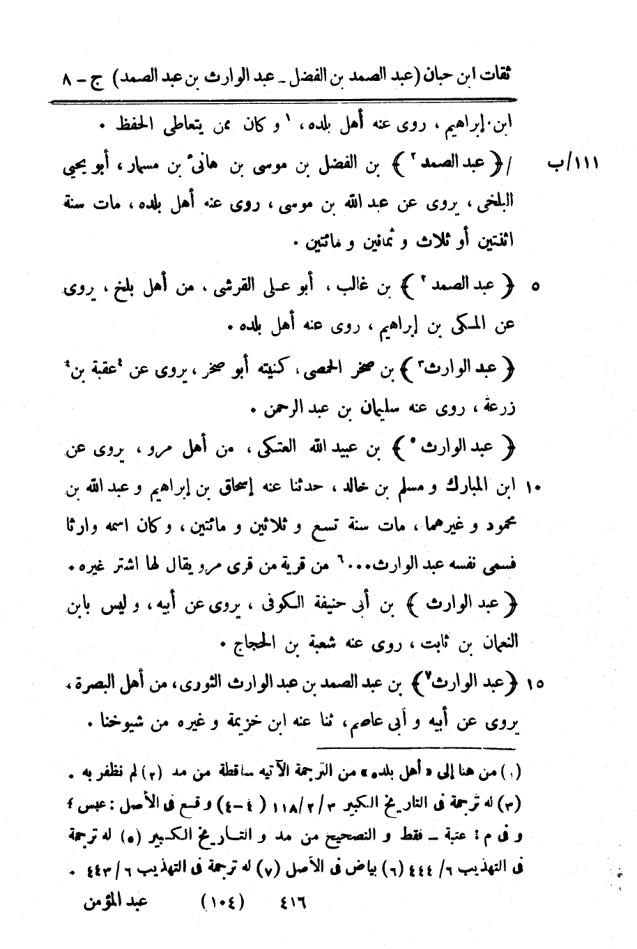 14165 - عبد الصَّمد بن الْفضل بن مُوسَى بن هَانِئ بن مِسْمَار أَبُو يحيى الْبَلْخِي يروي عَن عبد الله بن مُوسَى روى عَنهُ أهل بَلَده مَاتَ سنة اثْنَتَيْنِ أَو ثَلَاث وَثَمَانِينَ وَمِائَتَيْنِ