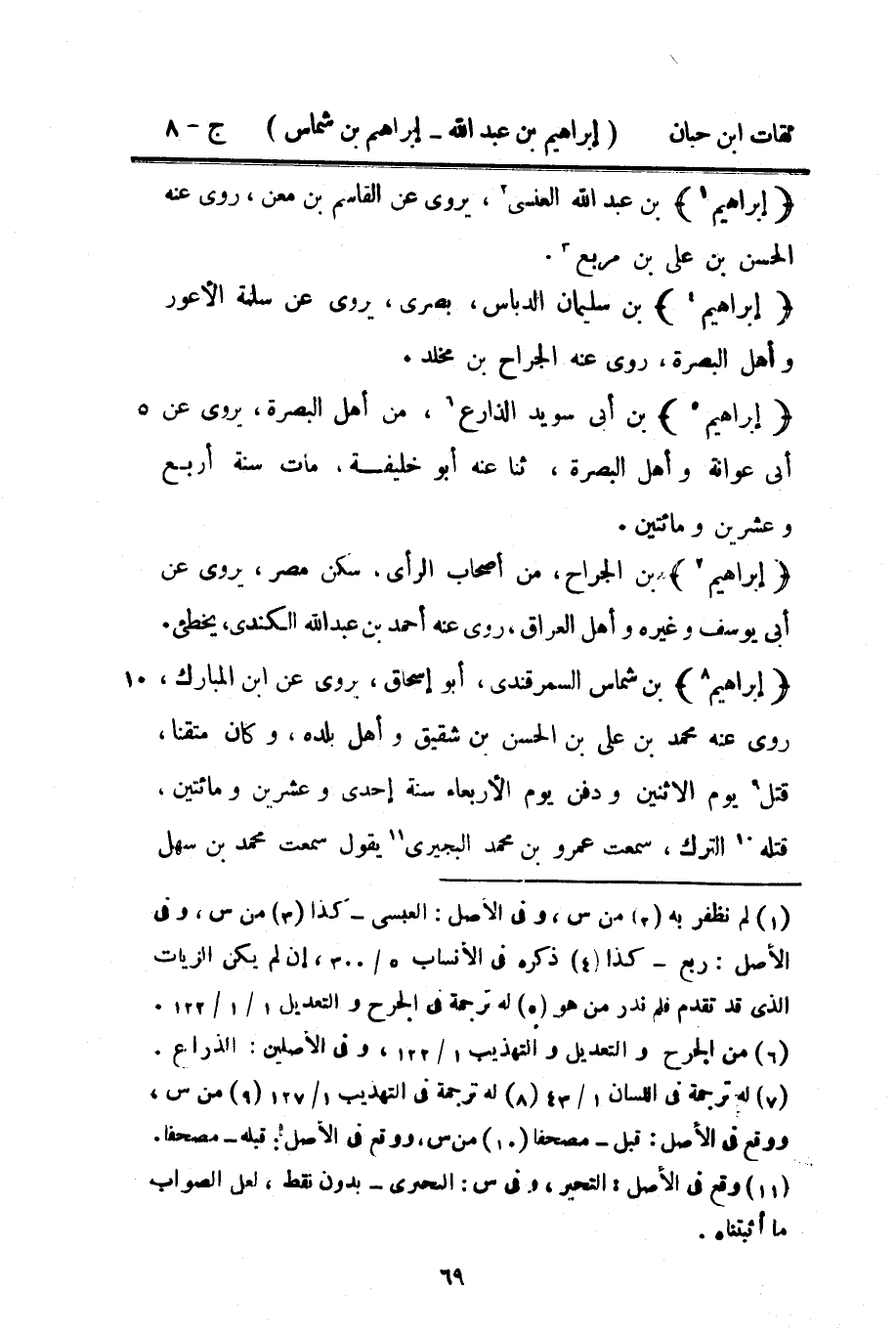 12288 - إِبْرَاهِيم بن شماس السَّمرقَنْدِي أَبُو إِسْحَاق يرْوى عَن بن الْمُبَارك روى عَنهُ مُحَمَّد بن عَليّ بن الْحسن بْن شَقِيق وَأهل بَلَده وَكَانَ متقنا قتل يَوْم الْإِثْنَيْنِ وَدفن يَوْم الْأَرْبَعَاء سنة إِحْدَى وَعشْرين وَمِائَتَيْنِ قَتله التّرْك سَمِعت عَمْرو بن مُحَمَّد البجيري يَقُول سَمِعت مُحَمَّد بن سهل