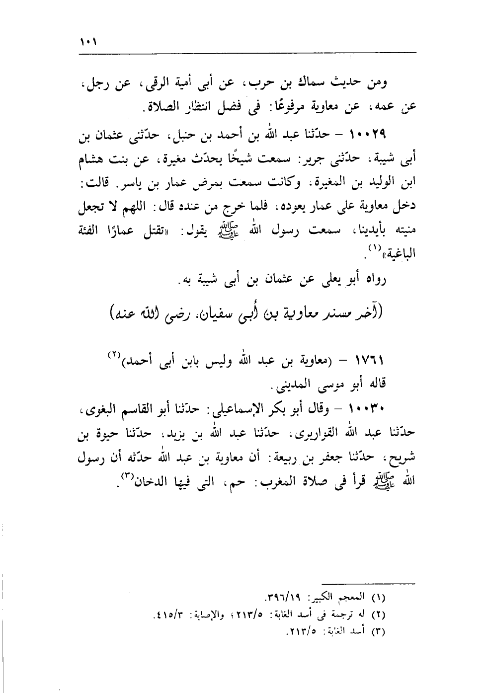 (آخر مسند بن معاوية بن أبى سفيان، رضى الله عنه)