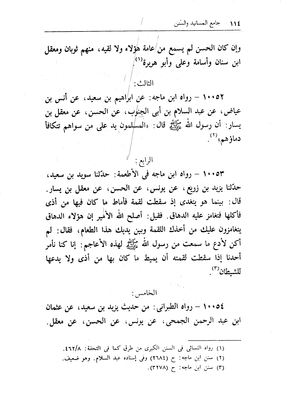 10052 - رواه ابن ماجه: عن إبراهيم بن سعيد، عن أنس بن عياض، عن عبد السلام بن أبى الجنوب، عن الحسن، عن معقل بن يسار: أن رسول الله - صلى الله عليه وسلم - قال: «المسلمون يد على من سواهم تتكافأ دماؤهم» (¬1) .