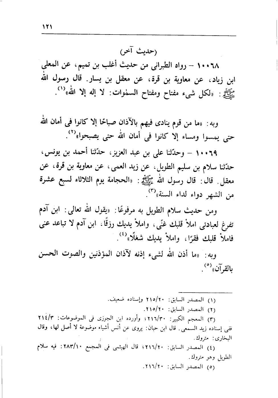 (¬4) المصدر السابق: 20/216؛ قال الهيثمى فى المجمع 10/283: فيه سلام الطويل وهو متروك.