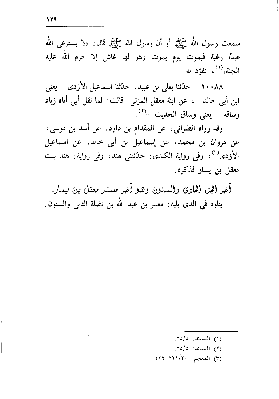 آخر الجزء الحادى والستون وهو آخر مسند معقل بن يسار