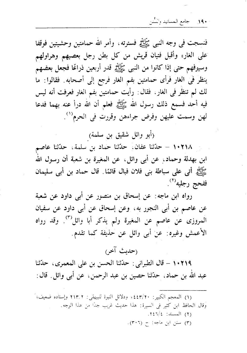 10219 - قال الطبرانى: حدثنا الحسن بن على المعمرى، حدثنا عبد الله بن حماد، حدثنا حصين بن عبد الرحمن، عن أبى وائل. قال: