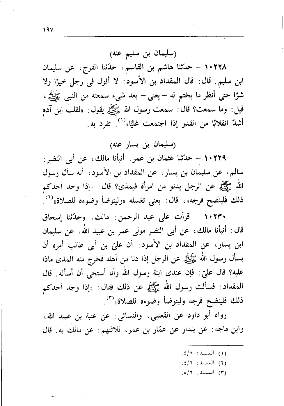 10229 - حدثنا عثمان بن عمر، أنبأنا مالك، عن أبى النضر: سالم، عن سليمان بن يسار، عن المقداد بن الأسود، أنه سأل رسول الله - صلى الله عليه وسلم - عن الرجل يدنو من امرأة فيمذى؟ قال: «إذا وجد أحدكم ذلك فلينضح فرجه» ، قال: يعنى تغسله «وليتوضأ وضوءه للصلاة» (¬2) .