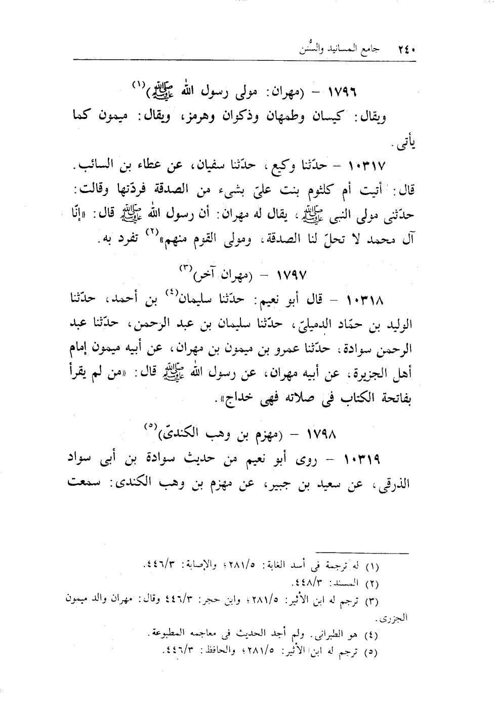 (¬3) ترجم له ابن الأثير: 5/281؛ وابن حجر: 3/446 وقال: مهران والد ميمون الجزرى.