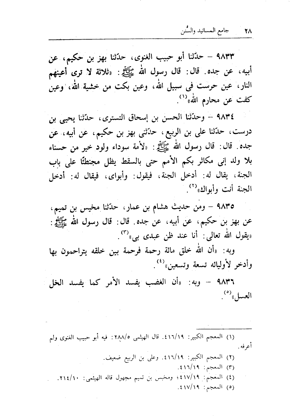 (¬1) المعجم الكبير: 19/416؛ قال الهيثمى 5/288: فيه أبو حبيب الغنوى ولم أعرفه.