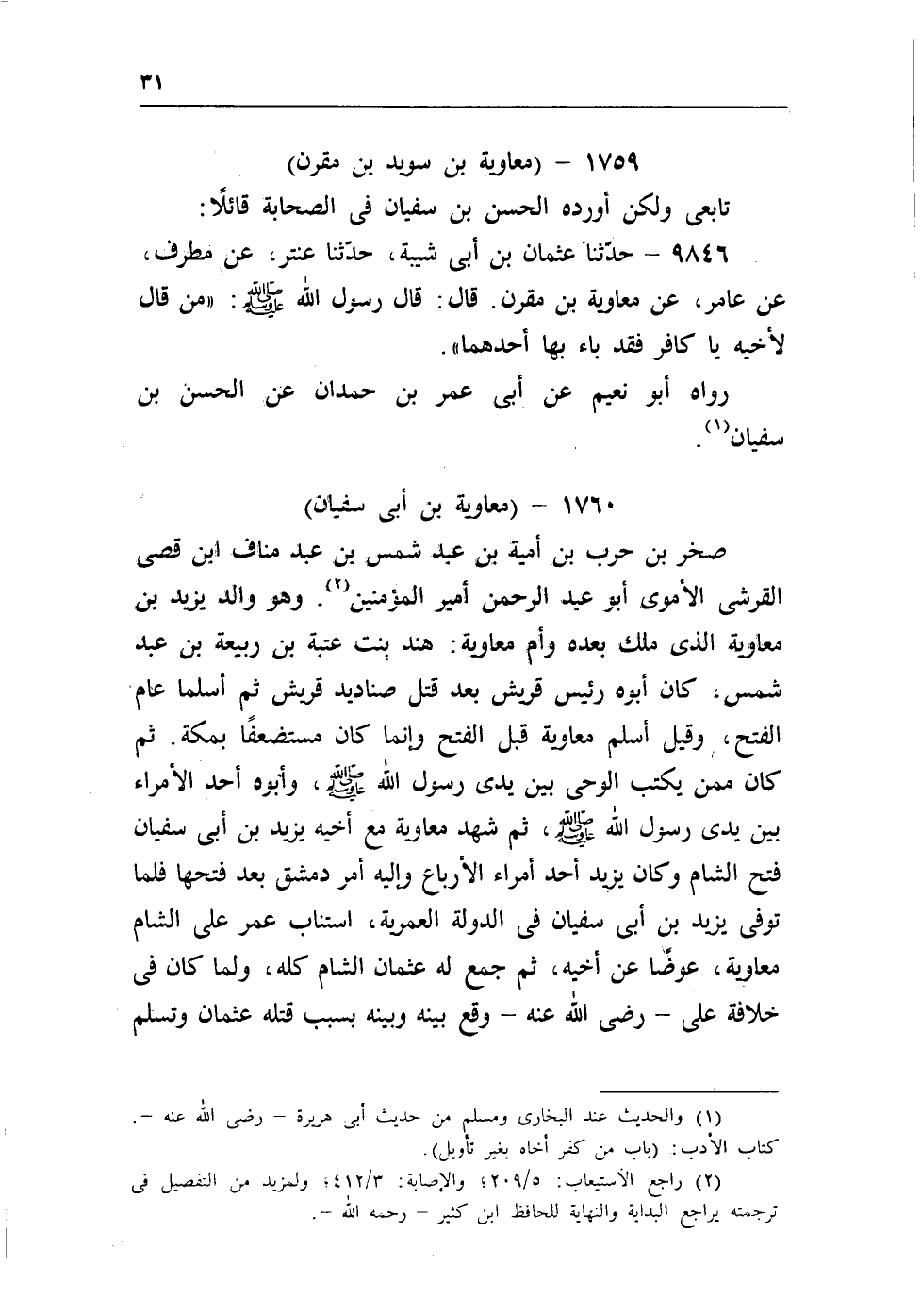(¬2) راجع الاستيعاب: 5/209، والإصابة: 3/412 ب ولمزيد من التفصيل فى ترجمة يراجع البداية والنهاية للحافظ ابن كثير ـ رحمه الله ـ