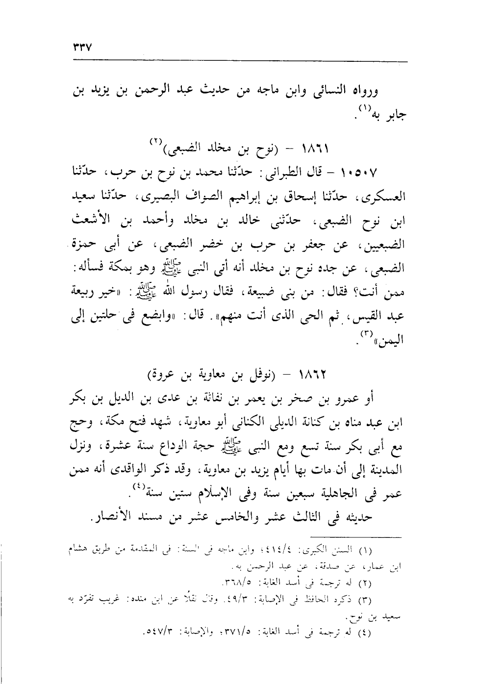 (¬2) ذكره الحافظ فى الإصابة: 3/49. وقال نقلا عن ابن منده: غريب تفرد به سعيد بن نوح.