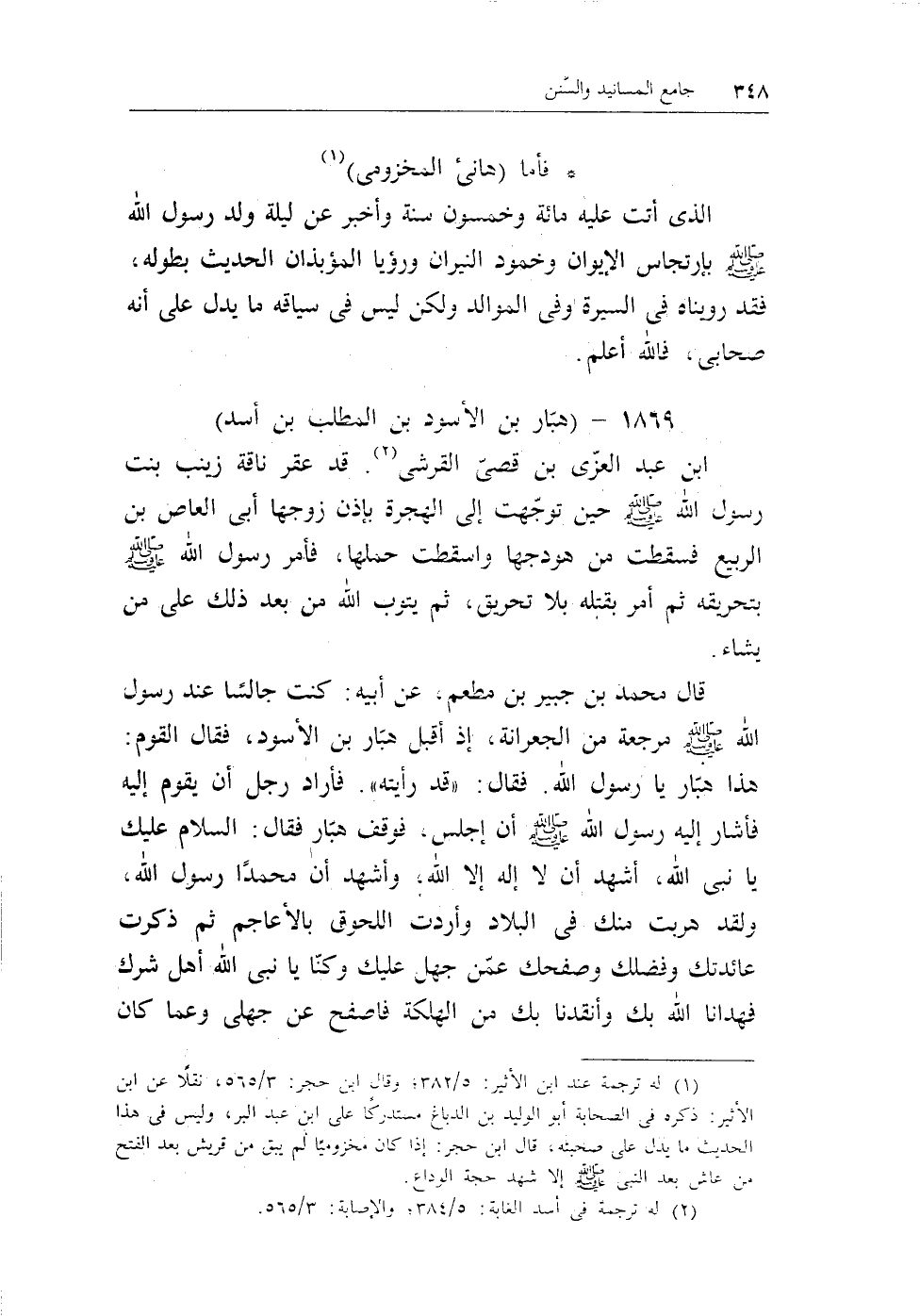(¬1) له ترجمة عند ابن الأثير: 5/382؛ وقال ابن حجر: 3/565، نقلا عن ابن الأثير: ذكره فى الصحابة أبو الوليد بن الدباغ مستدركا على ابن عبد البر، وليس فى هذا الحديث ما يدل على صحبته، قال ابن حجر: إذا كان مخزوميا لم يبق من قريش بعد الفتح من عاش بعد النبى - صلى الله عليه وسلم - إلا شهد حجة الوداع.