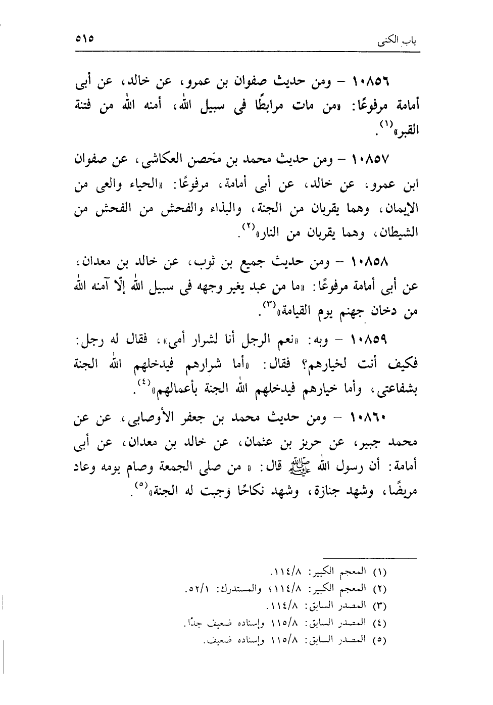 (¬4) المصدر السابق: 8/115 وإسناده ضعيف جداً.
