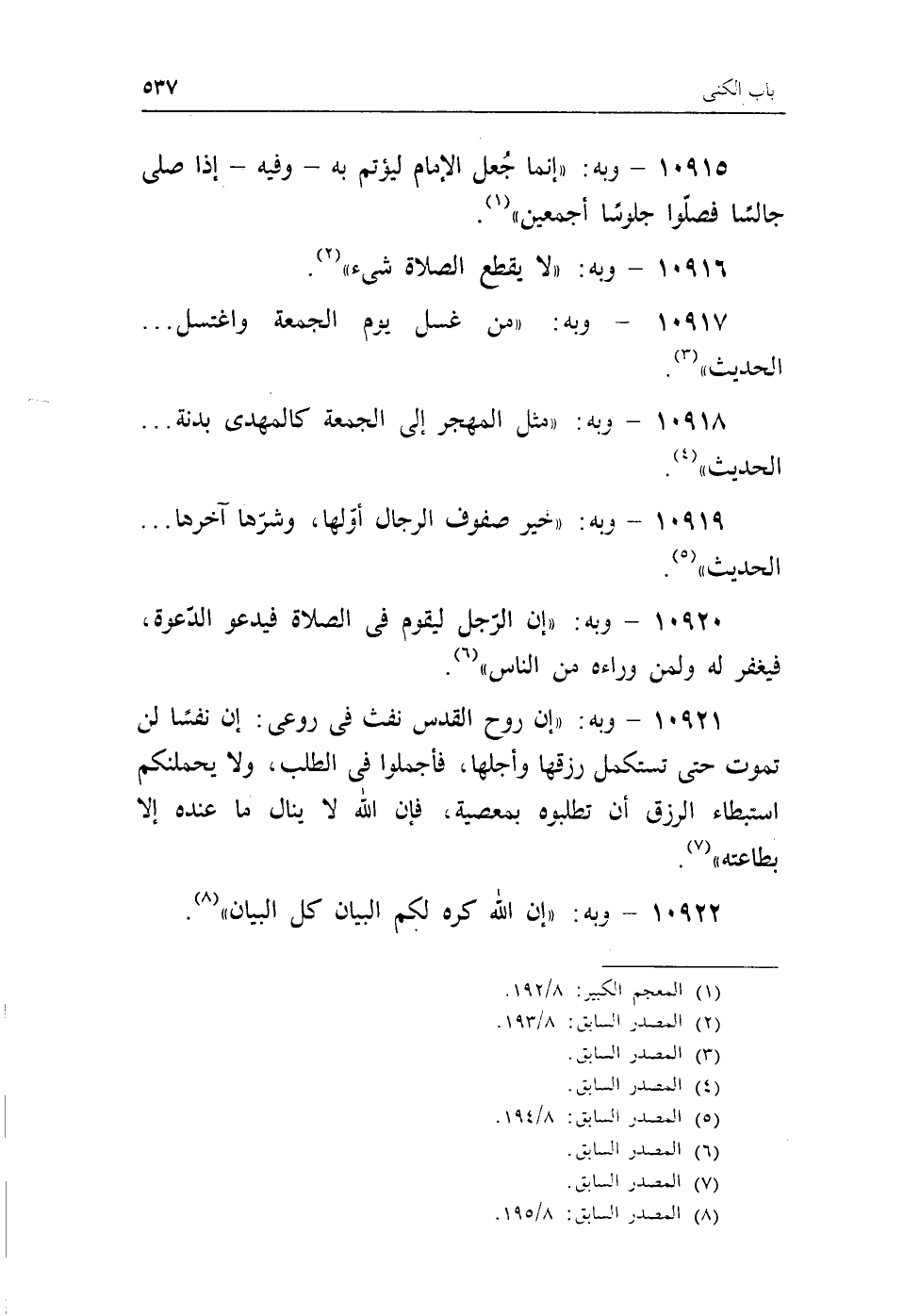 10918 - وبه: «مثل المهجر إلى الجمعة كالمهدى بدنة.. الحديث» (¬4) .