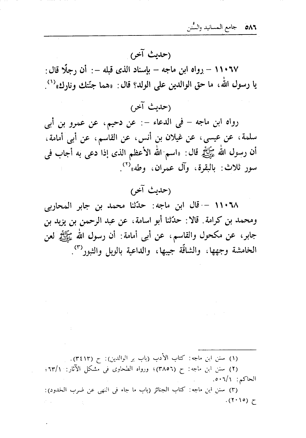 (¬2) سنن ابن ماجه: ح (3856) ؛ ورواه الطحاوى فى شكل الآثار: 1/63؛ الحاكم: 1/506.