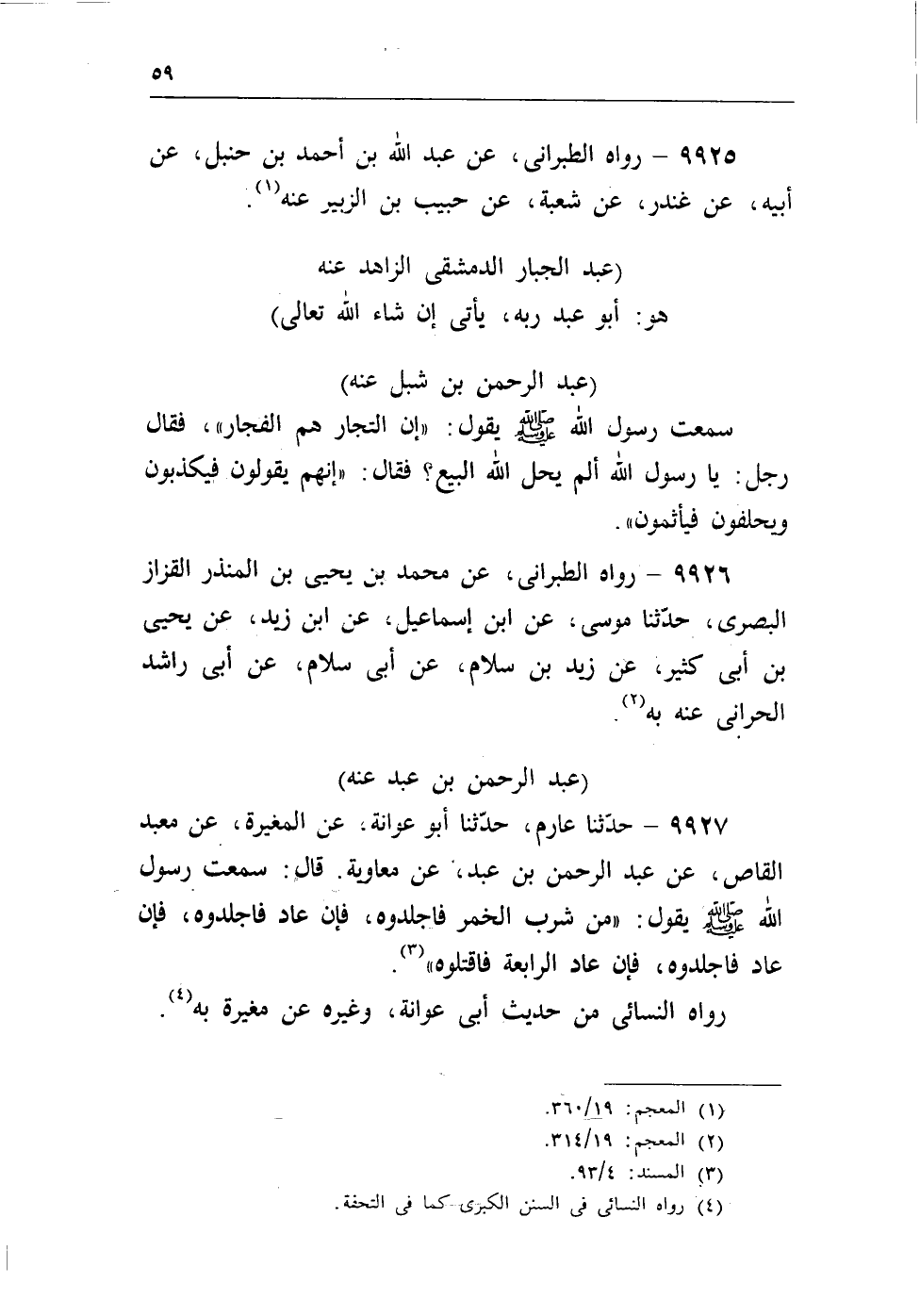 9926 - رواه الطبرانى، عن محمد بن يحيى بن المنذر القزاز البصرى، حدثنا موسى، عن ابن إسماعيل، عن ابن زيد، عن يحيى بن أبى كثير، عن زيد بن سلام، عن أبى سلام، عن أبى راشد الحرانى عنه به (¬2) .