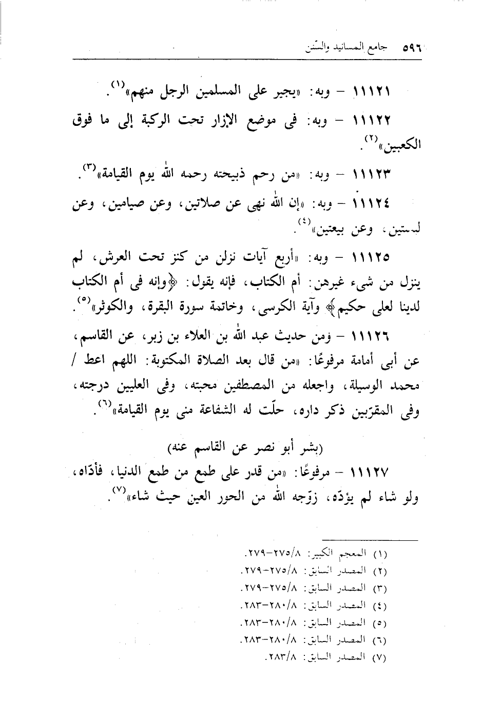 11122 - وبه: فى موضع الإزار تحت الركبة إلى ما فوق الكعبين» (¬2) .