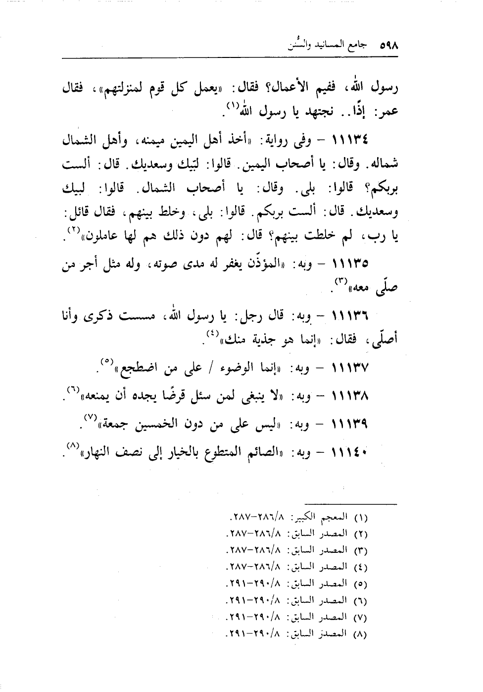 11134 - وفى رواية: «أخذ أهل اليمين ميمنه، وأهل الشمال شماله.