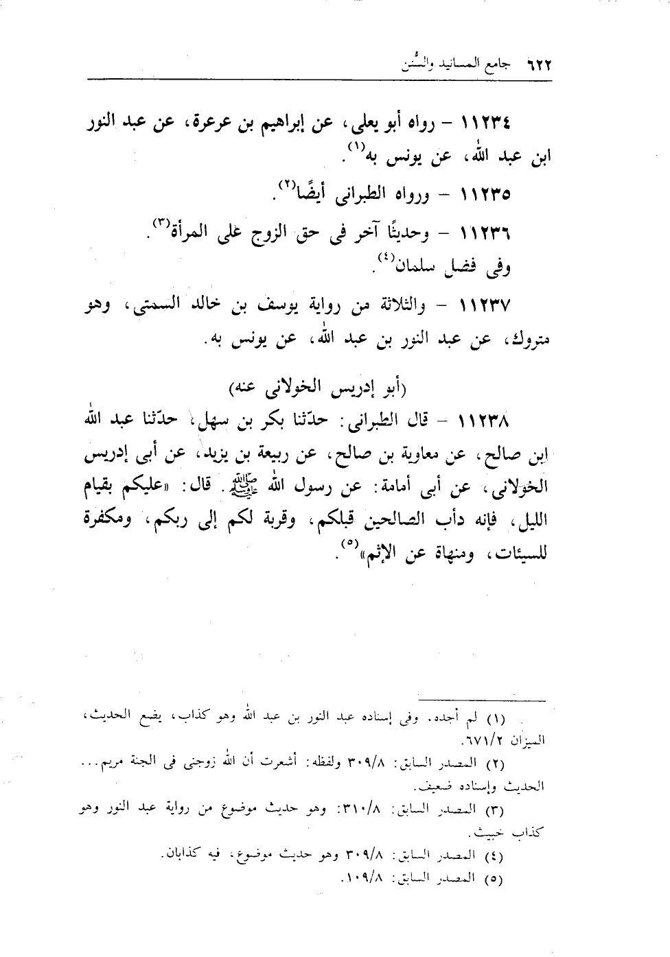 (¬3) المصدر السابق: 8/310:: وهو حديث موضوع من رواية عبد النور وهو كذاب خبيث.