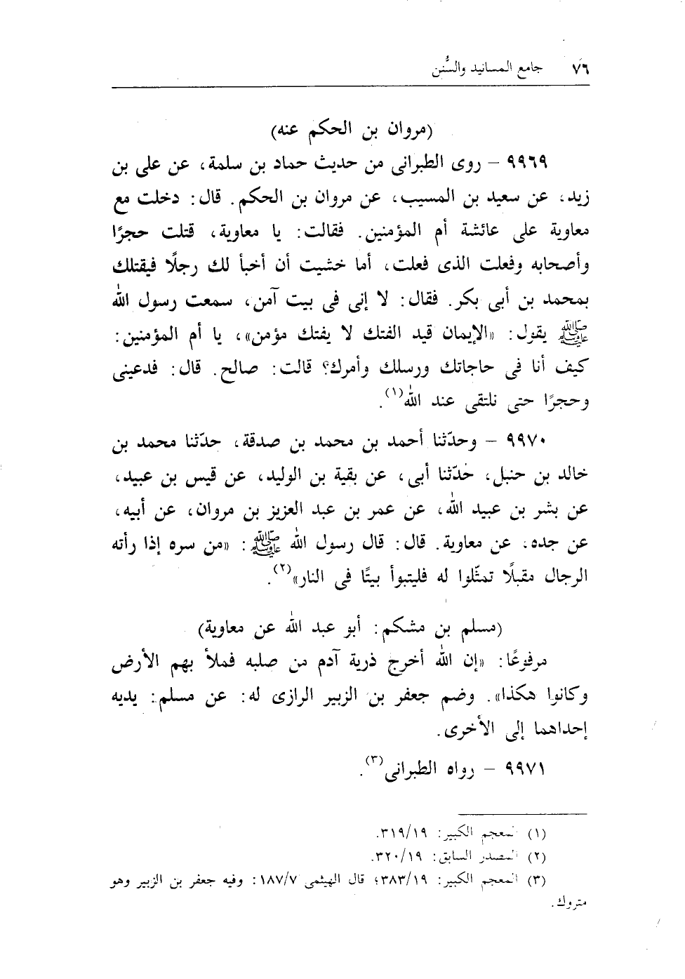 (¬3) المعجم الكبير: 19/383؛ قال الهيثمى 7/187: وفيه جعفر بن الزبير وهو متروك.