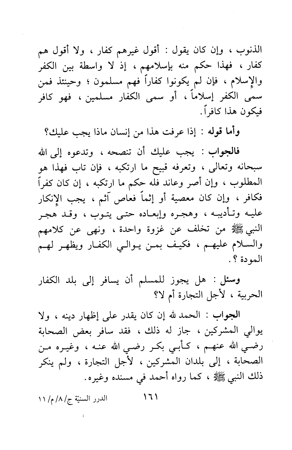 كتاب الدرر السنية في الأجوبة النجدية (اسم الجزء: 8)