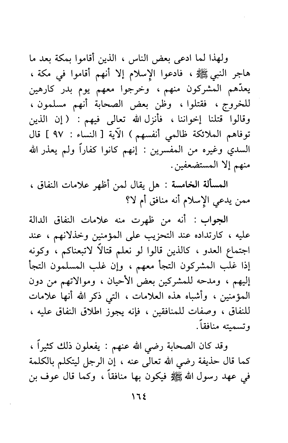 المسألة الخامسة: هل يقال لمن أظهر علامات النفاق ممن يدعي الإسلام أنه منافق، أم لا؟