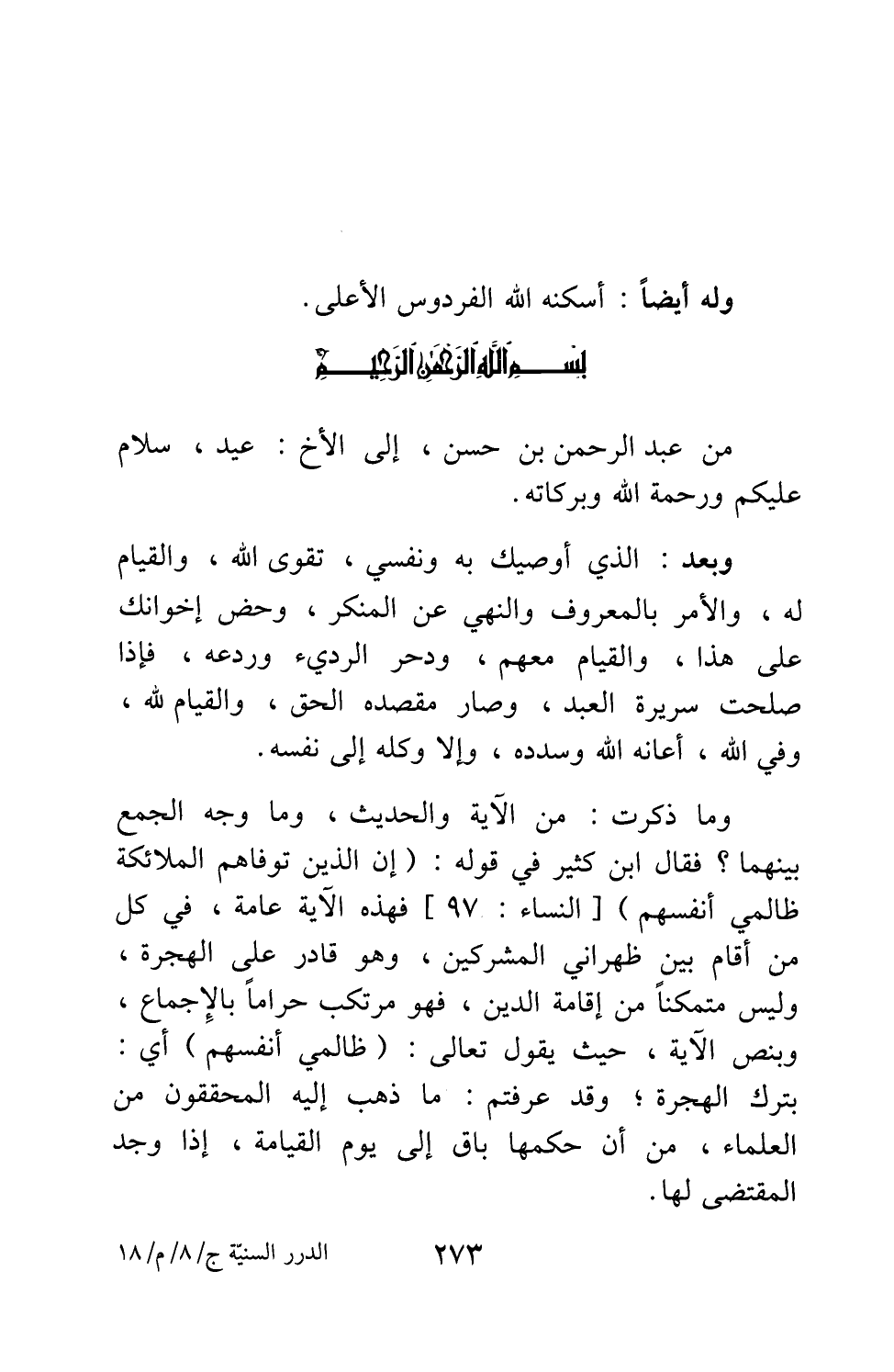 كتاب الدرر السنية في الأجوبة النجدية (اسم الجزء: 8)