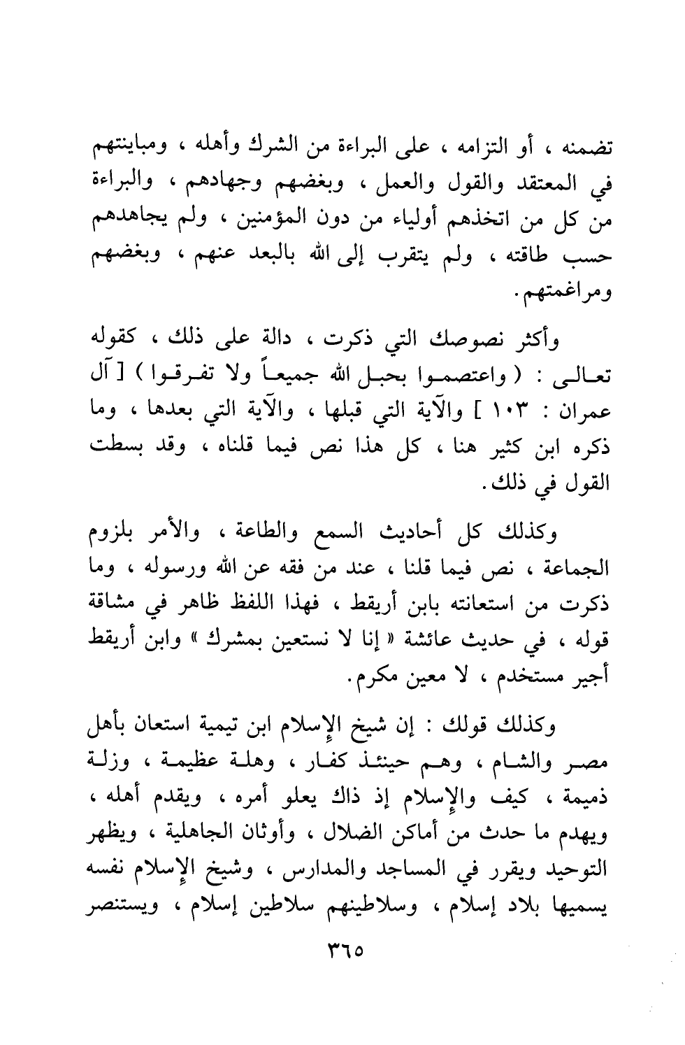 وأكثر نصوصك التي ذكرت، دالة على ذلك، كقوله تعالى: {وَاعْتَصِمُوا بِحَبْلِ اللَّهِ جَمِيعاً وَلا تَفَرَّقُوا} [سورة آل عمران آية: 103] ، والآية التي قبلها، والآية التي بعدها، وما ذكره ابن كثير هنا، كل هذا نص فيما قلناه، وقد بسطت القول في ذلك.