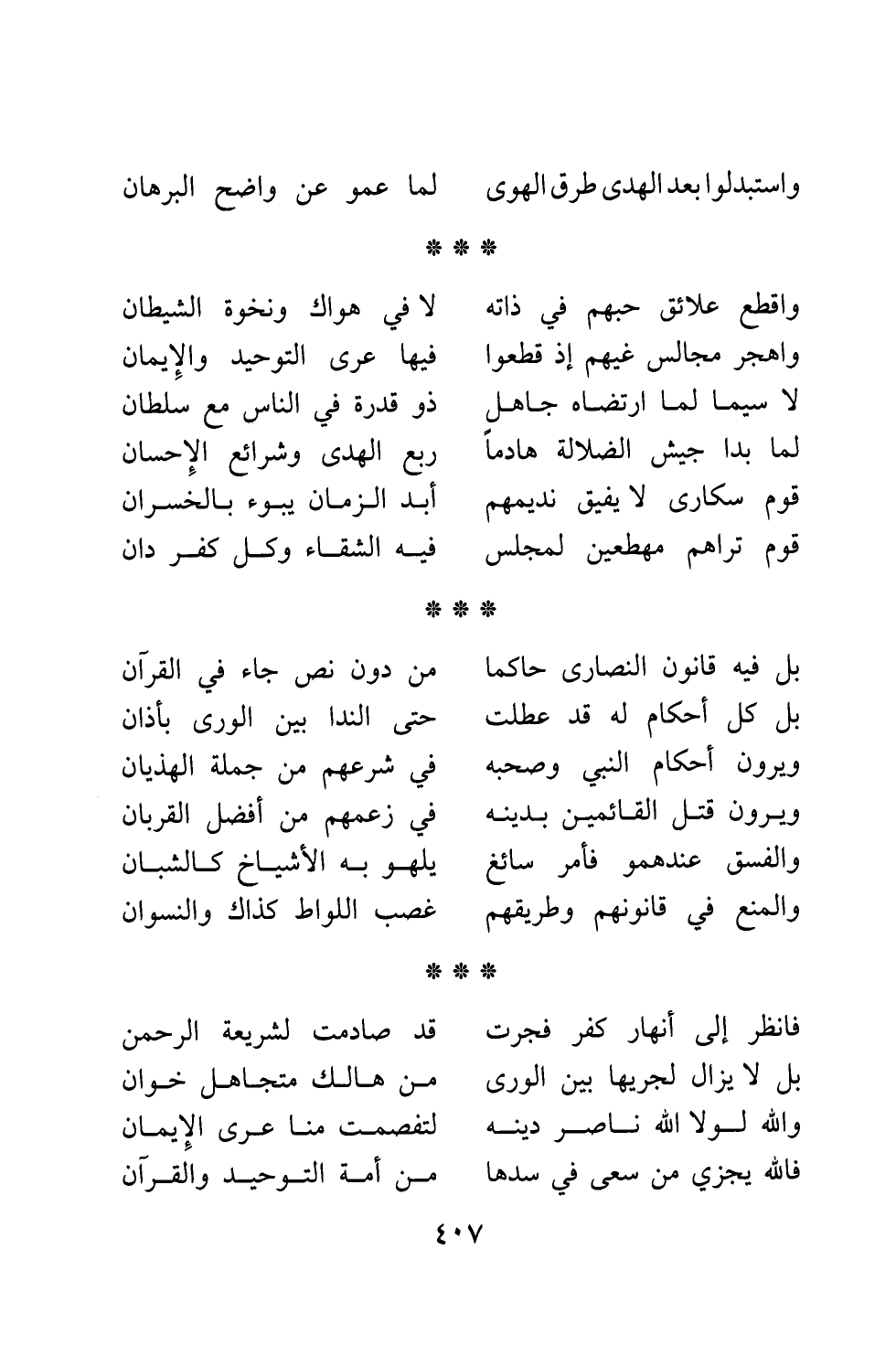 بل كل أحكام له قد عُطلت ... حتى النِّدا بين الورى بأذانِ