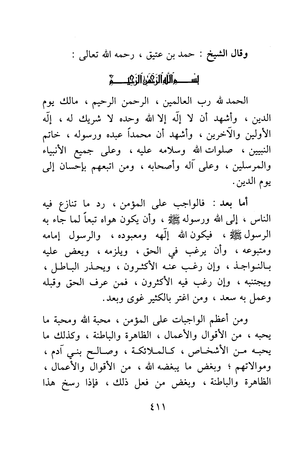 وقال الشيخ حمد بن عتيق، رحمه الله تعالى: