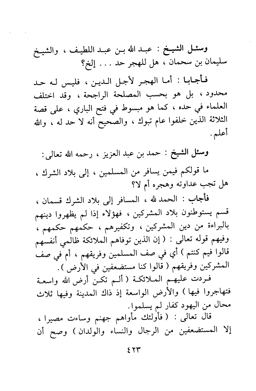 وسئل الشيخ عبد الله بن عبد اللطيف، والشيخ سليمان بن سحمان: هل للهجر حد ... إلخ؟