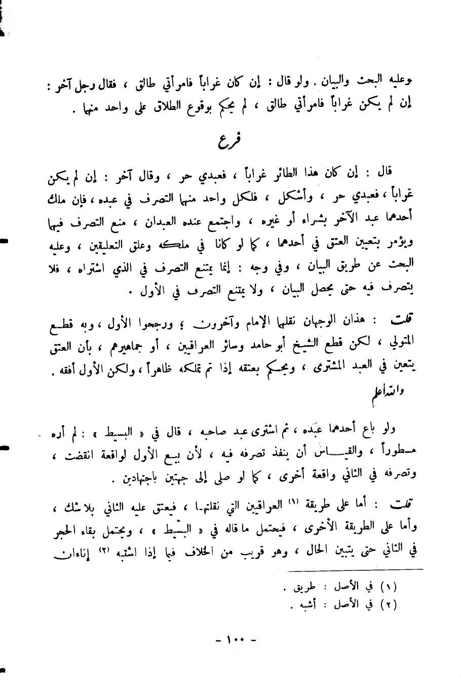 قُلْتُ: أَمَّا عَلَى طَرِيقَةِ الْعِرَاقِيِّينَ الَّتِي نَقَلْتُهَا، فَيَعْتِقُ عَلَيْهِ الثَّانِيَ بِلَا شَكٍّ، وَأَمَّا عَلَى الطَّرِيقَةِ الْأُخْرَى، فَيُحْتَمَلُ مَا قَالَهُ فِي «الْبَسِيطِ» ، وَيُحْتَمَلُ بَقَاءُ الْحَجْرِ فِي الثَّانِي حَتَّى يَتَبَيَّنَ الْحَالُ، وَهُوَ قَرِيبٌ مِنَ الْخِلَافِ فِيمَا إِذَا اشْتَبَهَ إِنَاءَانِ
