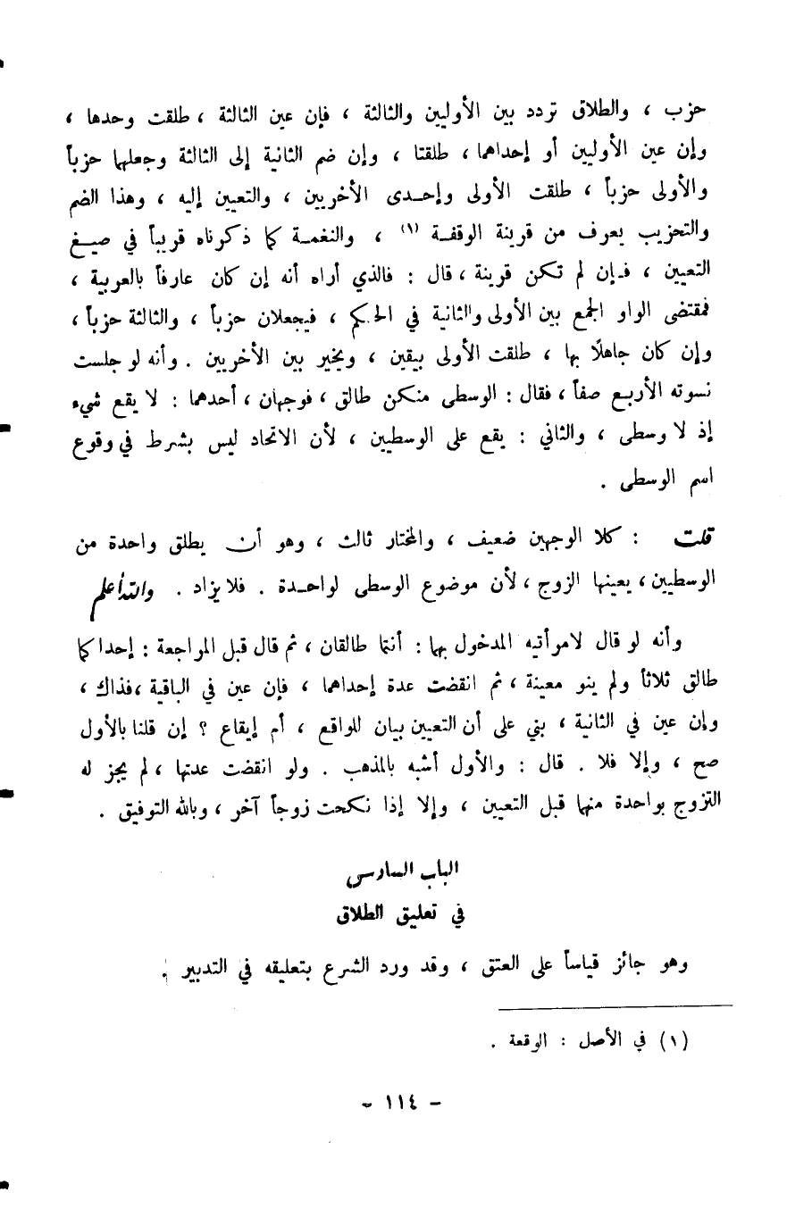 الْبَابُ السَّادِسُ فِي تَعْلِيقِ الطَّلَاقِ