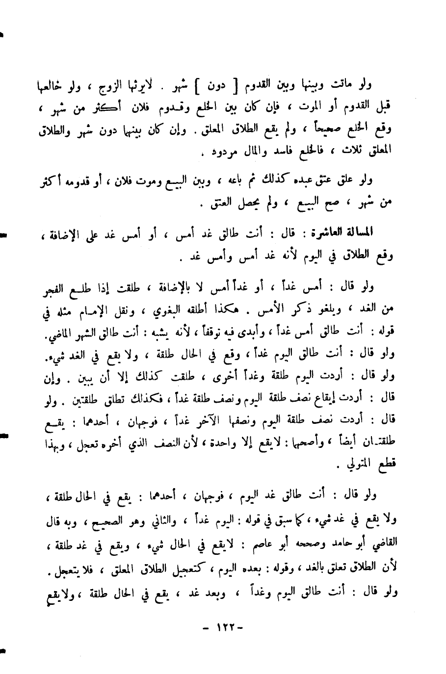الْمَسْأَلَةُ الْعَاشِرَةُ: قَالَ: أَنْتِ طَالِقٌ غَدَ أَمْسِ، أَوْ أَمْسِ غَدٍ عَلَى الْإِضَافَةِ، وَقَعَ الطَّلَاقُ فِي الْيَوْمِ لِأَنَّهُ غَدُ أَمْسِ وَأَمْسِ غَدٍ.