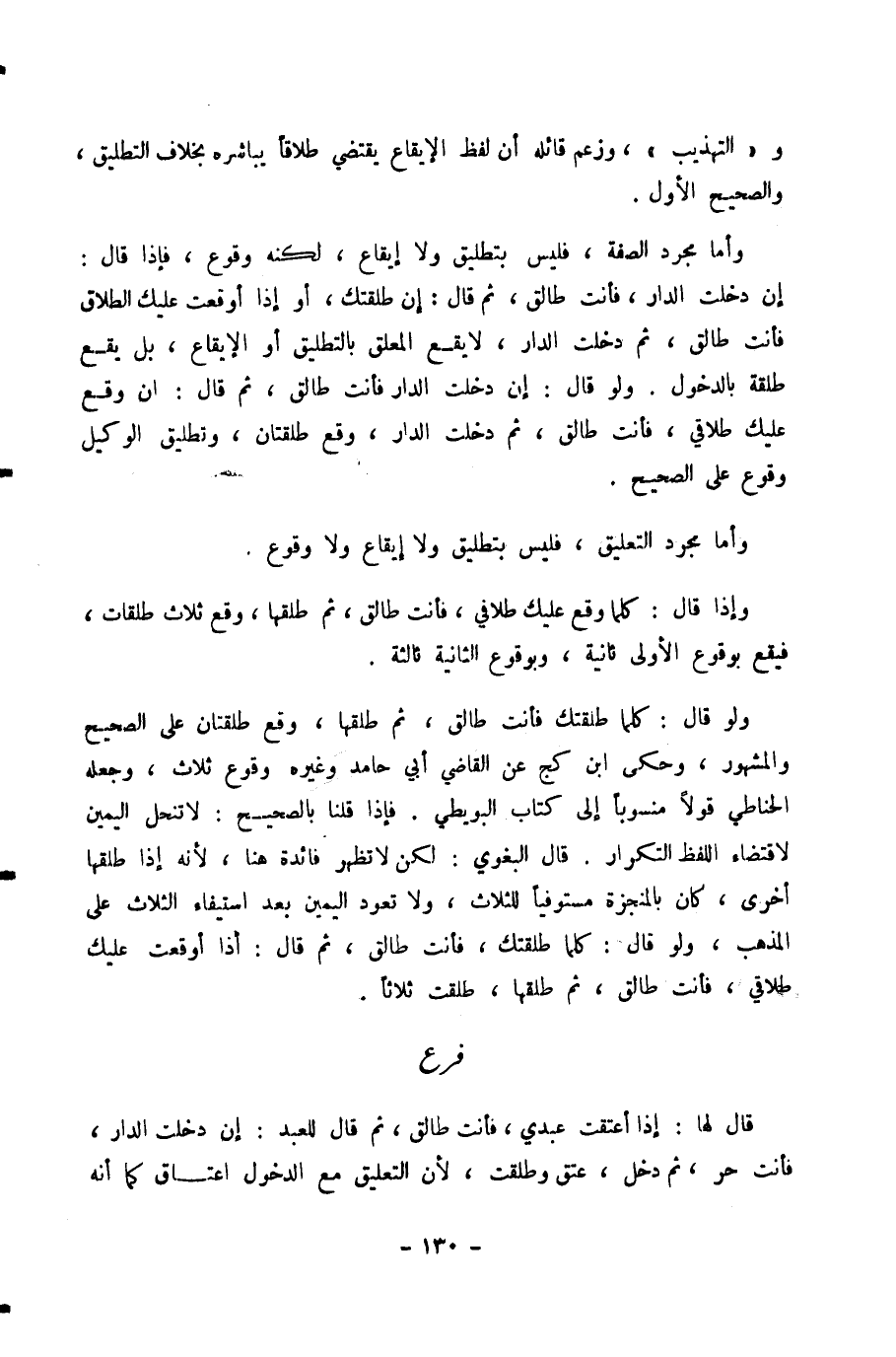 وَ «التَّهْذِيبِ» ، وَزَعَمَ قَائِلُهُ أَنَّ لَفْظَ الْإِيقَاعِ يَقْتَضِي طَلَاقًا يُبَاشِرُهُ بِخِلَافِ التَّطْلِيقِ، وَالصَّحِيحُ الْأَوَّلُ.