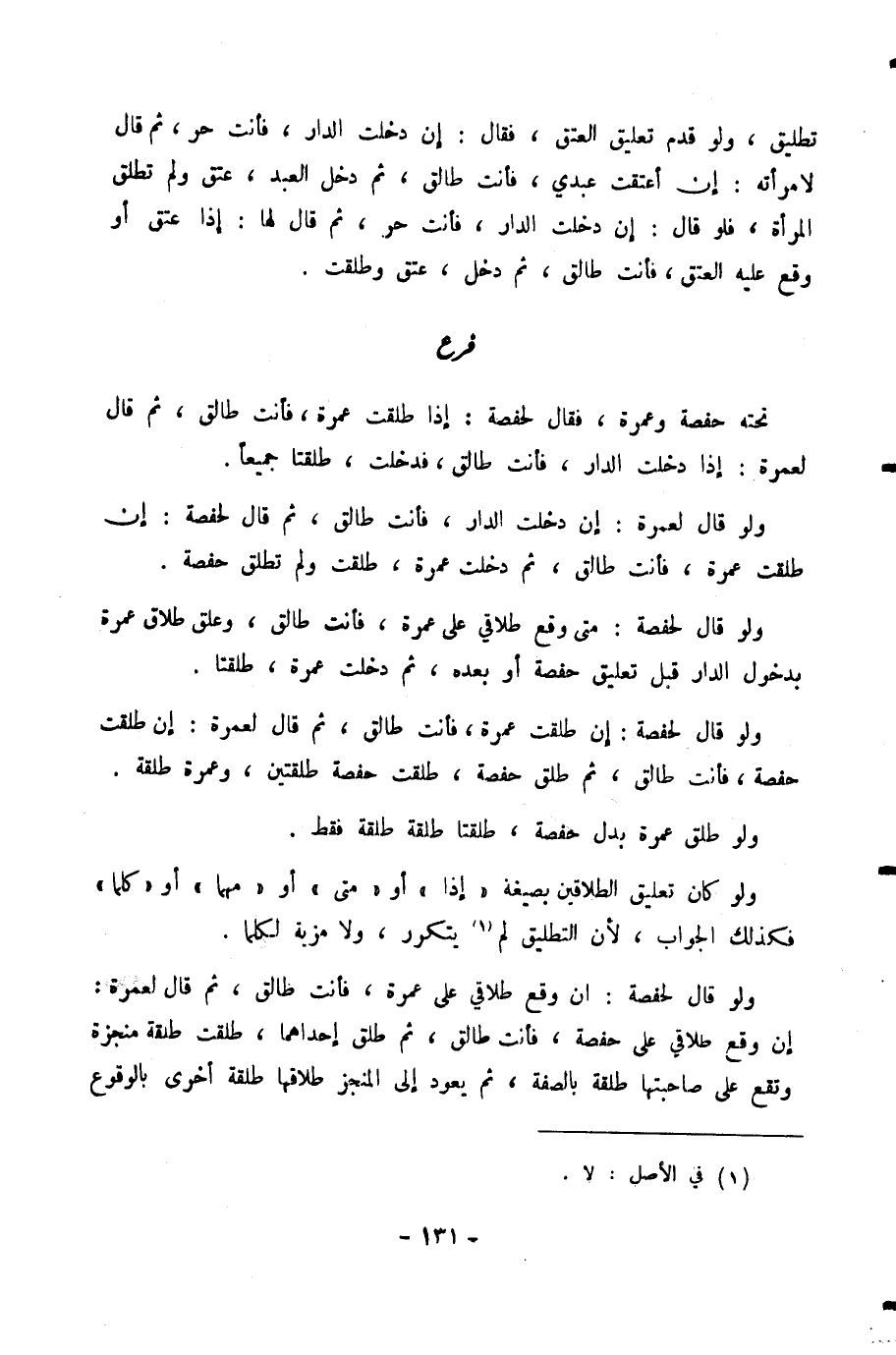 وَلَوْ قَالَ لِعَمْرَةَ: إِنْ دَخَلْتِ الدَّارَ، فَأَنْتِ طَالِقٌ، ثُمَّ قَالَ لِحَفْصَةَ: إِنْ طَلَّقْتُ عَمْرَةَ، فَأَنْتِ طَالِقٌ، ثُمَّ دَخَلَتْ عَمْرَةُ، طُلِّقَتْ وَلَمْ تُطَلَّقْ حَفْصَةُ.