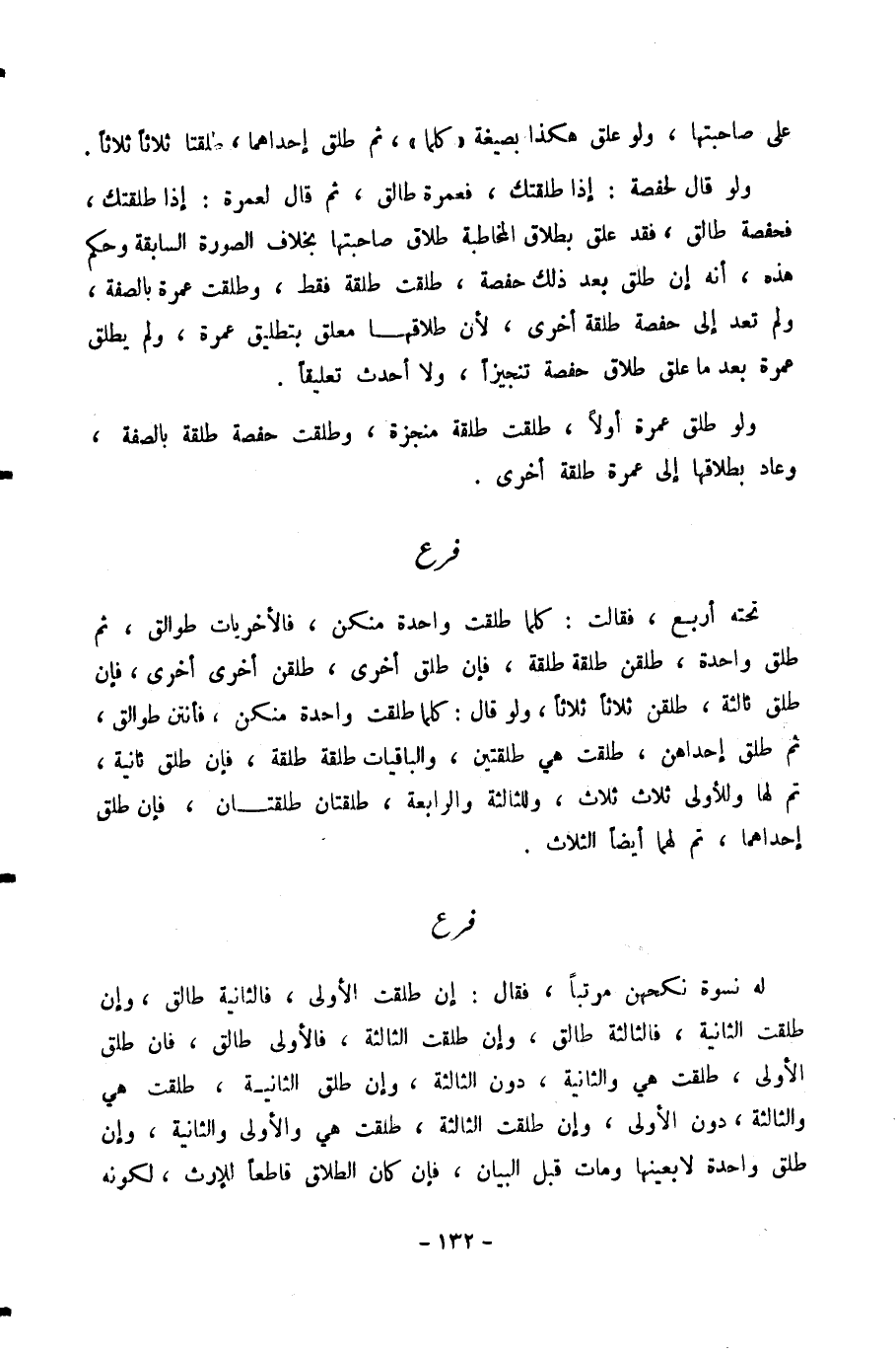 تَحْتَهُ أَرْبَعٌ، فَقَالَ: كُلَّمَا طَلَّقْتُ وَاحِدَةً مِنْكُنَّ، فَالْأُخْرَيَاتُ طَوَالِقُ، ثُمَّ طَلَّقَ وَاحِدَةً، طُلِّقْنَ طَلْقَةً طَلْقَةً، فَإِنْ طَلَّقَ أُخْرَى، طُلِّقْنَ أُخْرَى أُخْرَى، فَإِنْ طَلَّقَ ثَالِثَةً، طُلِّقْنَ ثَلَاثًا ثَلَاثًا، وَلَوْ قَالَ: كُلَّمَا طَلَّقْتُ وَاحِدَةً مِنْكُنَّ، فَأَنْتُنَّ طَوَالِقُ، ثُمَّ طَلَّقَ إِحْدَاهُنَّ، طُلِّقَتْ هِيَ طَلْقَتَيْنِ، وَالْبَاقِيَاتُ طَلْقَةً طَلْقَةً، فَإِنْ طَلَّقَ ثَانِيَةً، تَمَّ لَهَا وَلِلْأُولَى ثَلَاثٌ ثَلَاثٌ، وَلِلثَّالِثَةِ وَالرَّابِعَةِ، طَلْقَتَانِ طَلْقَتَانِ، فَإِنْ طَلَّقَ إِحْدَاهُمَا، تَمَّ لَهُمَا أَيْضًا الثَّلَاثُ.