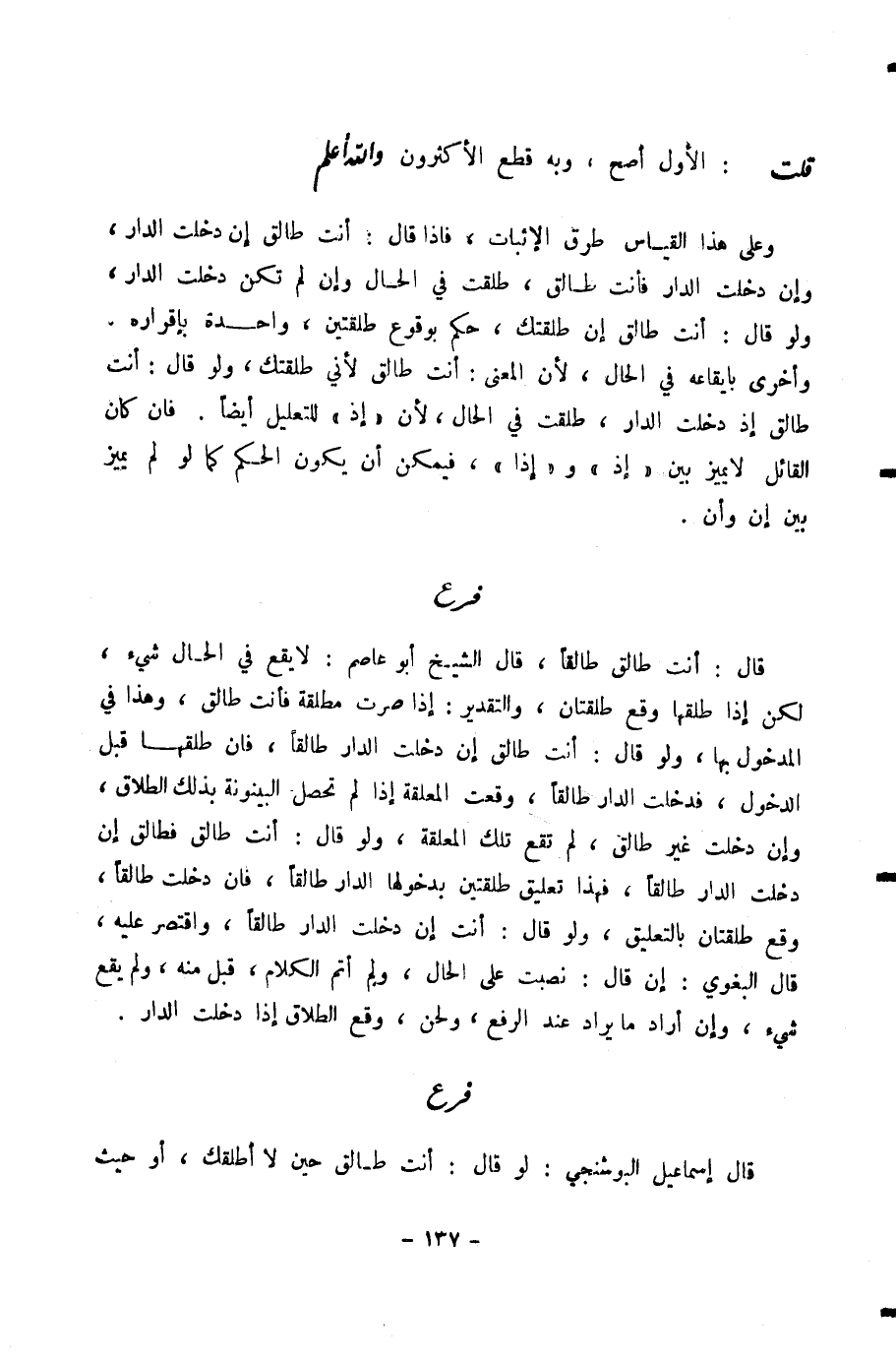 قَالَ: أَنْتِ طَالِقٌ طَالِقًا، قَالَ الشَّيْخُ أَبُو عَاصِمٍ: لَا يَقَعُ فِي الْحَالِ شَيْءٌ، لَكِنْ إِذَا طَلَّقَهَا وَقَعَ طَلْقَتَانِ، وَالتَّقْدِيرُ: إِذَا صِرْتِ مُطَلَّقَةً فَأَنْتِ طَالِقٌ، وَهَذَا فِي الْمَدْخُولِ بِهَا، وَلَوْ قَالَ: أَنْتِ طَالِقٌ إِنْ دَخَلْتِ الدَّارَ طَالِقًا، فَإِنْ طَلَّقَهَا قَبْلَ الدُّخُولِ، فَدَخَلَتِ الدَّارَ طَالِقًا، وَقَعَتِ الْمُعَلَّقَةُ إِذَا لَمْ تَحْصُلِ الْبَيْنُونَةُ بِذَلِكَ الطَّلَاقِ، وَإِنْ دَخَلَتْ غَيْرَ طَالِقٍ، لَمْ تَقَعْ تِلْكَ الْمُعَلَّقَةُ، وَلَوْ قَالَ: أَنْتِ طَالِقٌ فَطَالِقٌ إِنْ دَخَلْتِ الدَّارَ طَالِقًا، فَهَذَا تَعْلِيقُ طَلْقَتَيْنِ بِدُخُولِهَا الدَّارَ طَالِقًا، فَإِنْ دَخَلَتْ طَالِقًا، وَقَعَ طَلْقَتَانِ بِالتَّعْلِيقِ، وَلَوْ قَالَ: أَنْتِ إِنْ دَخَلْتِ الدَّارَ طَالِقًا، وَاقْتَصَرَ عَلَيْهِ، قَالَ الْبَغَوِيُّ: إِنْ قَالَ: نَصَبْتُ عَلَى الْحَالِ، وَلَمْ أُتِمَّ الْكَلَامَ، قُبِلَ مِنْهُ، وَلَمْ يَقَعْ شَيْءٌ، وَإِنْ أَرَادَ مَا يُرَادُ عِنْدَ الرَّفْعِ وَلَحَنَ، وَقَعَ الطَّلَاقُ إِذَا دَخَلَتِ الدَّارَ.