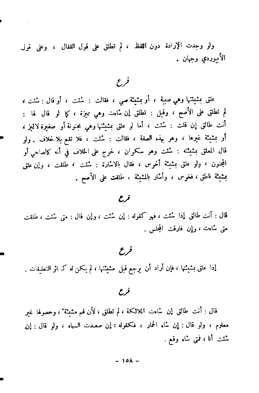 إِذَا عَلَّقَ بِمَشِيئَتِهَا، فَإِنْ أَرَادَ أَنْ يَرْجِعَ قَبْلَ مَشِيئَتِهَا، لَمْ يَكُنْ لَهُ كَسَائِرِ التَّعْلِيقَاتِ.